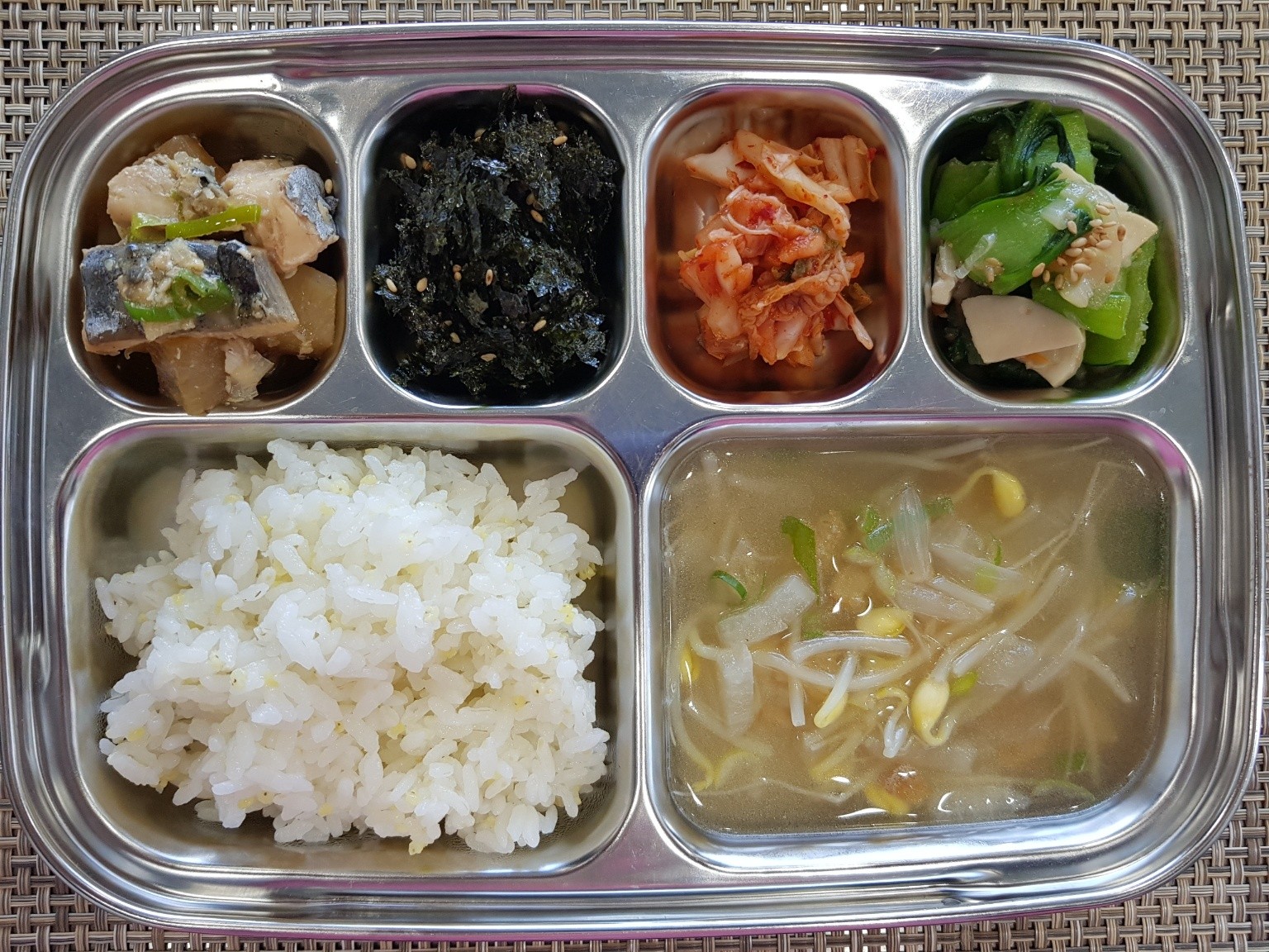 점 심 ~ 혼합잡곡밥, 황태콩나물국, 삼치무조림, 청경채나물볶음, 조미김, 배추김치