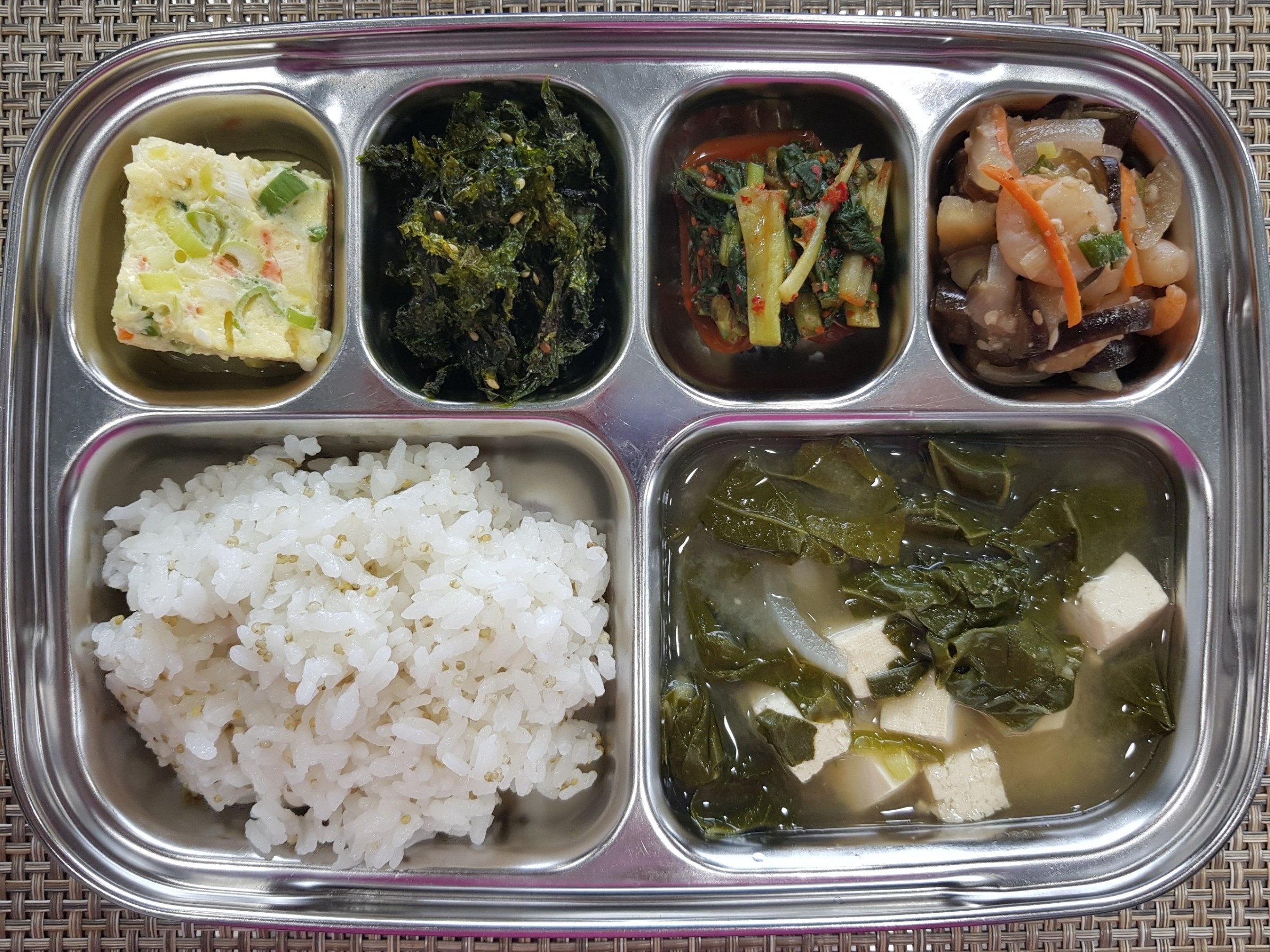 점 심 ~ 차조밥, 근대두부된장국, 영양계란찜, 파래김자반, 새우살가지볶음, 열무김치