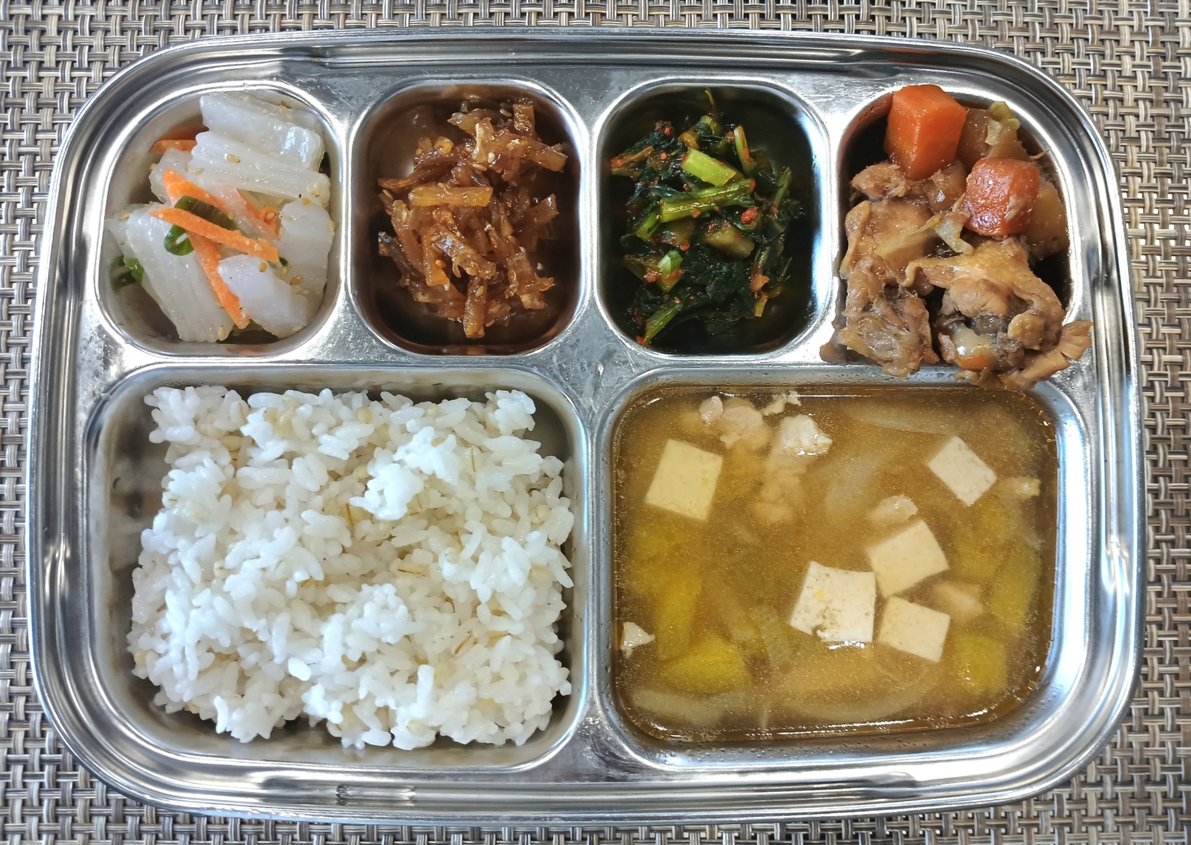 점 심 ~ 보리밥, 돈육두부찌개, 닭봉간장조림, 청포묵무침, 쥐채볶음, 열무김치